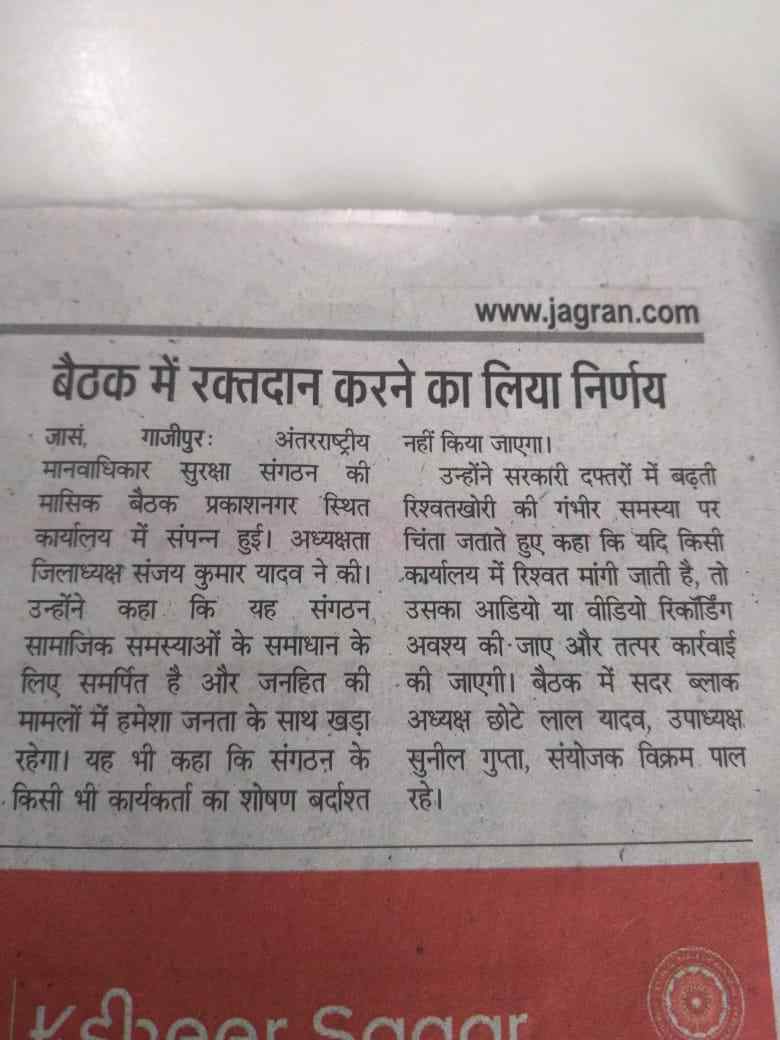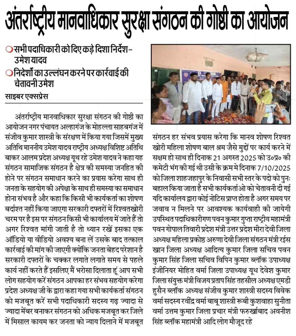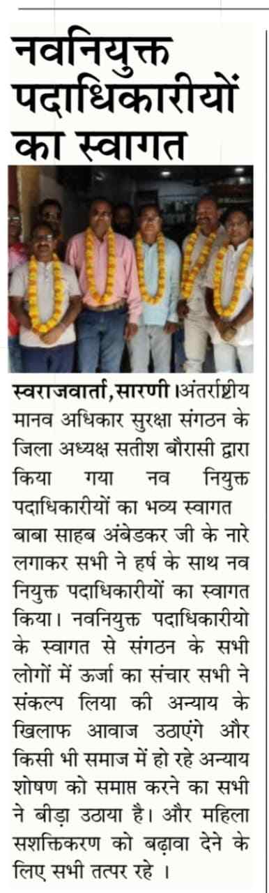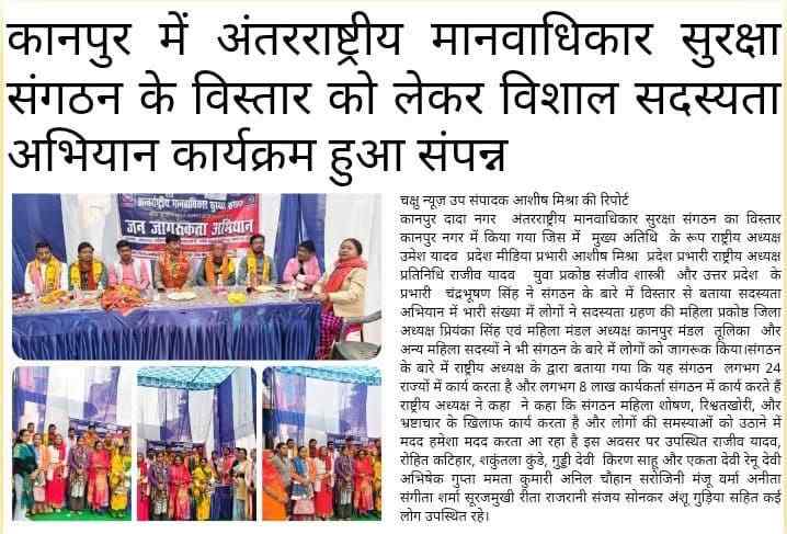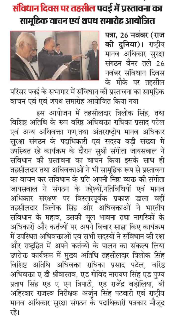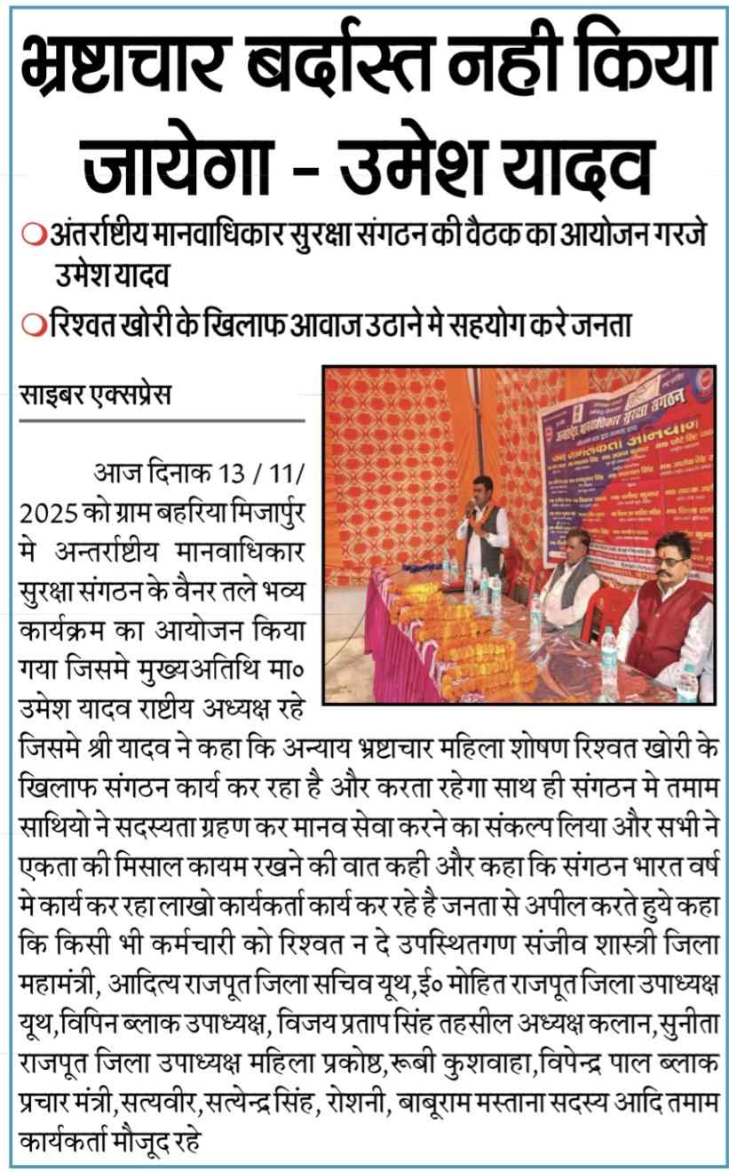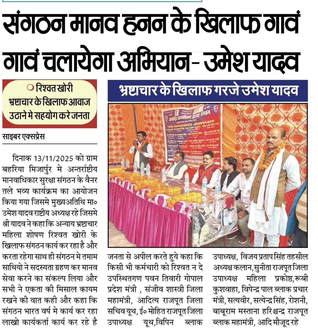 प्रतिष्ठा मे उमेश यादव राष्टीय अध्यक्ष अन्तर्राष्टीय मानवाधिकार सुरक्षा संगठन के द्वारा समाज मे व्याप्त भ्रष्टाचार के खिलाफ लडने के लिये प्रेरित करने का कार्य किया