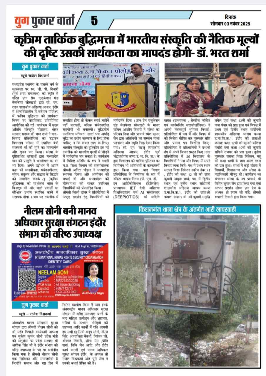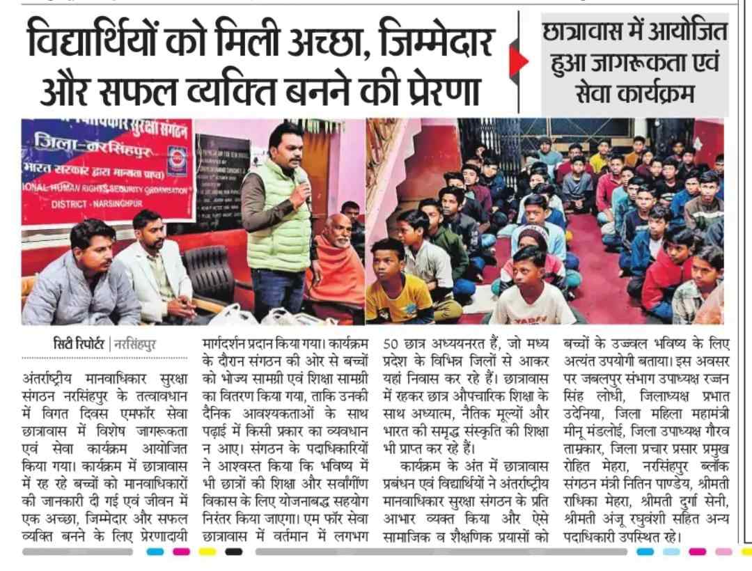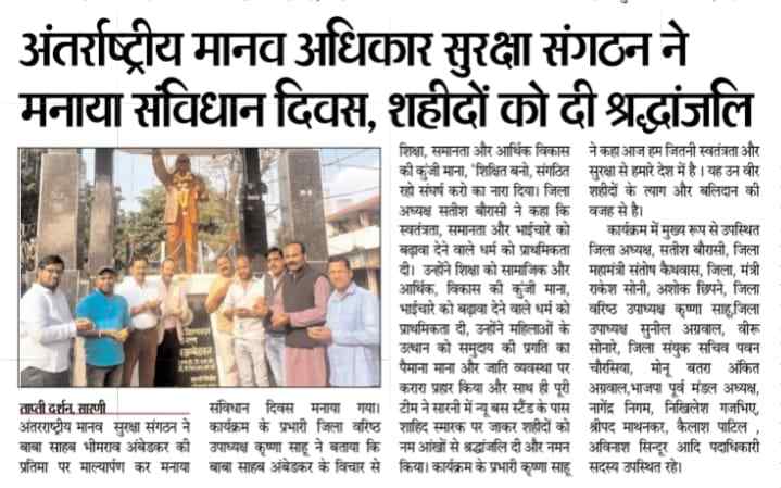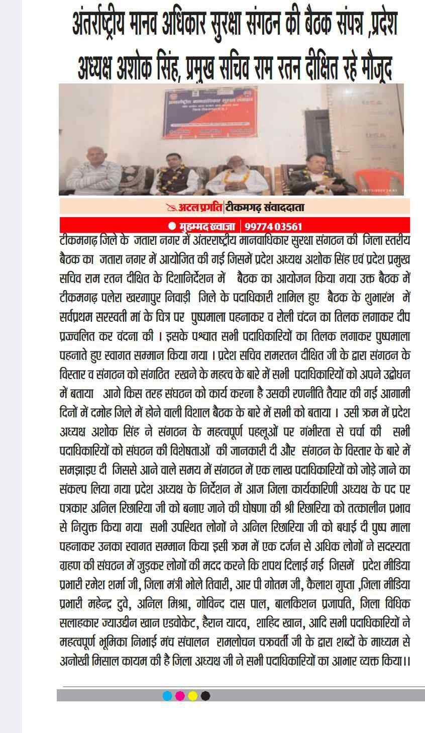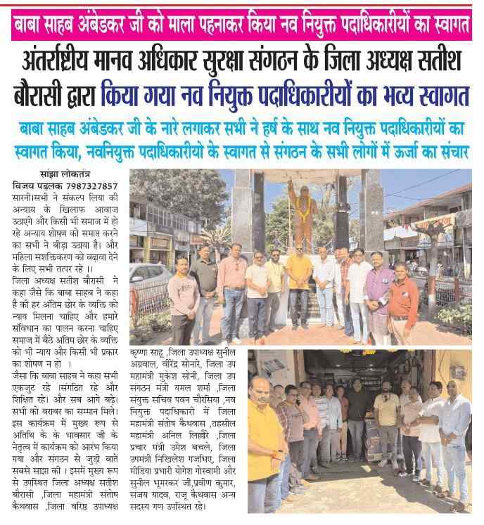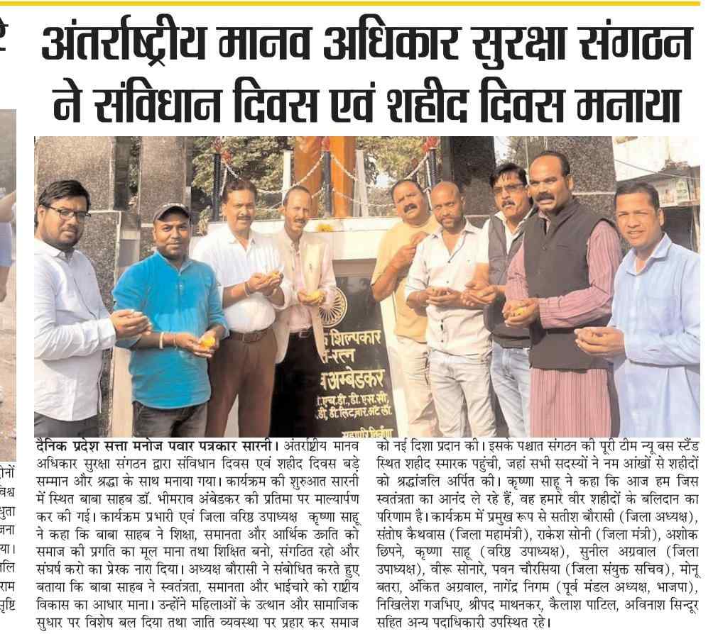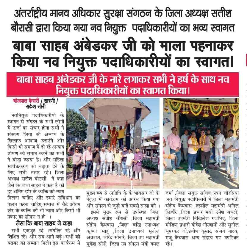 प्रतिष्ठा मे उमेश यादव राष्टीय अध्यक्ष अन्तर्राष्टीय मानवाधिकार सुरक्षा संगठन के द्वारा समाज मे व्याप्त भ्रष्टाचार के खिलाफ लडने के लिये प्रेरित करने का कार्य किया