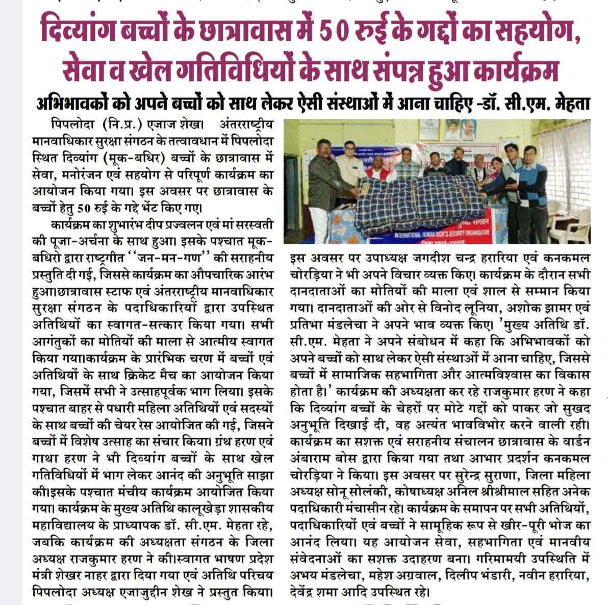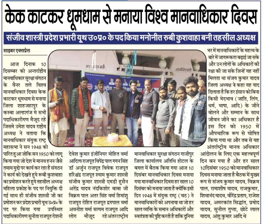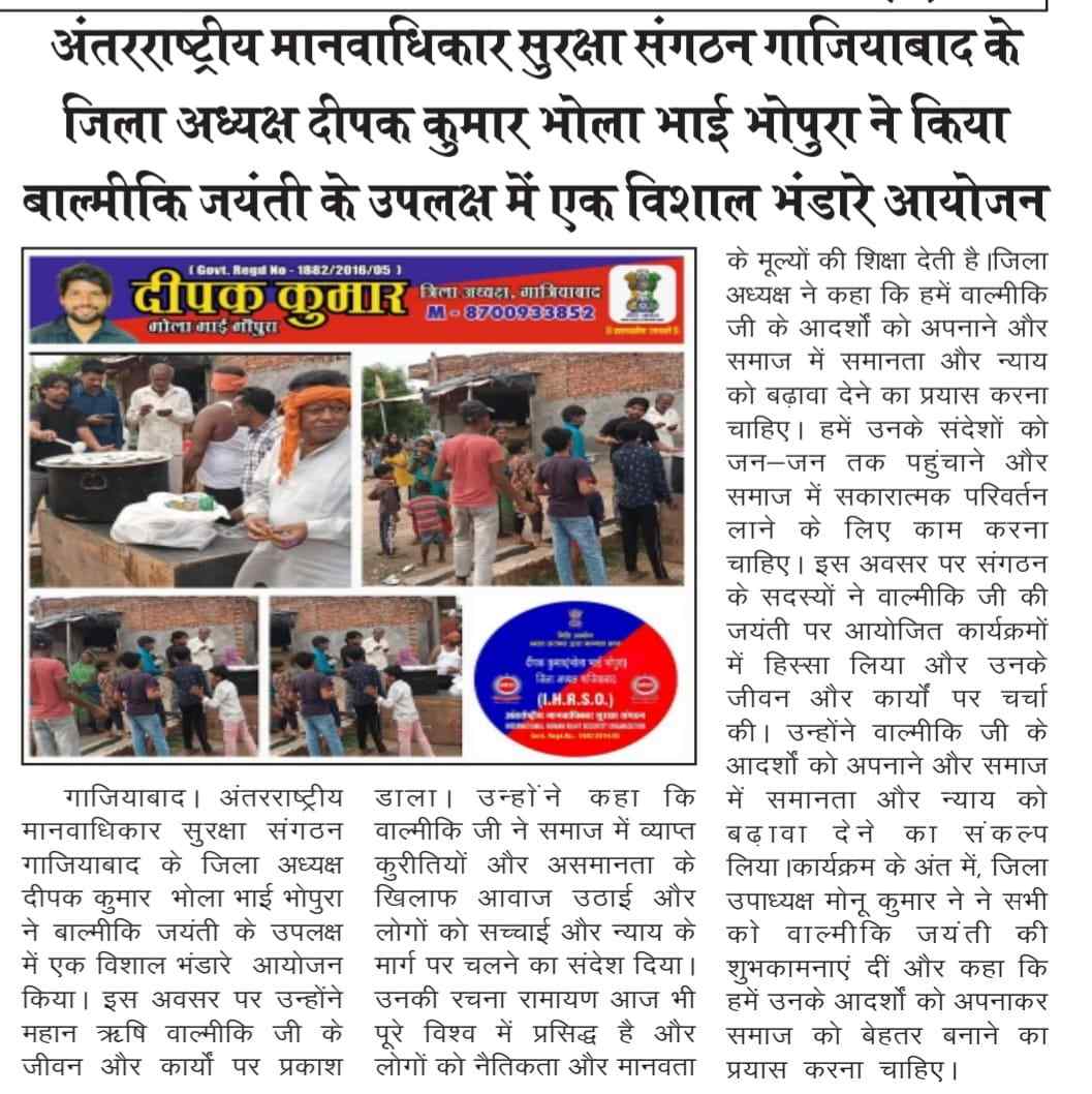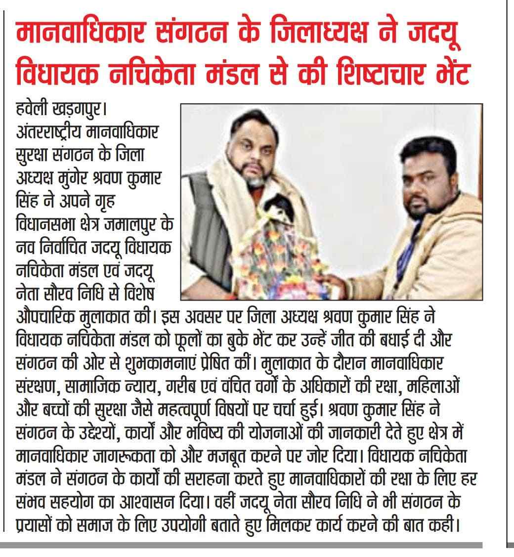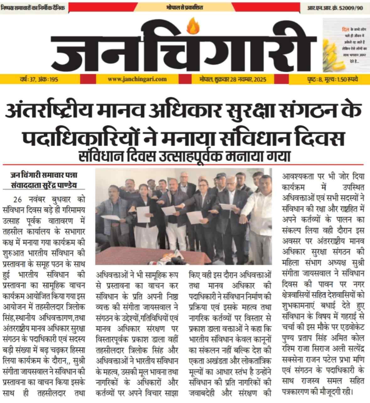 प्रतिष्ठा मे उमेश यादव राष्टीय अध्यक्ष अन्तर्राष्टीय मानवाधिकार सुरक्षा संगठन के द्वारा समाज मे व्याप्त भ्रष्टाचार के खिलाफ लडने के लिये प्रेरित करने का कार्य किया