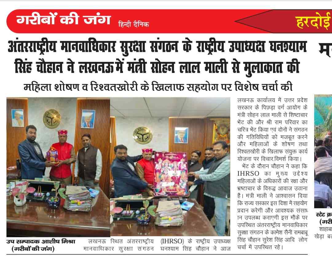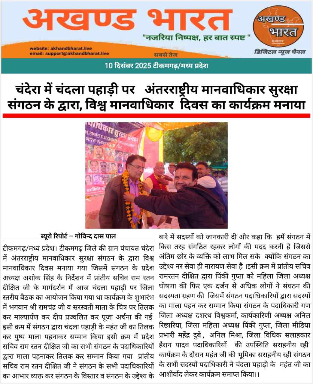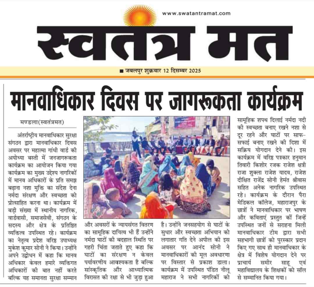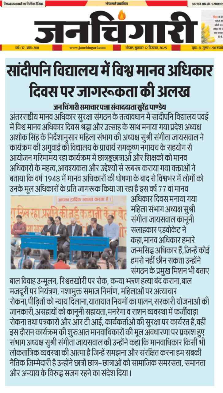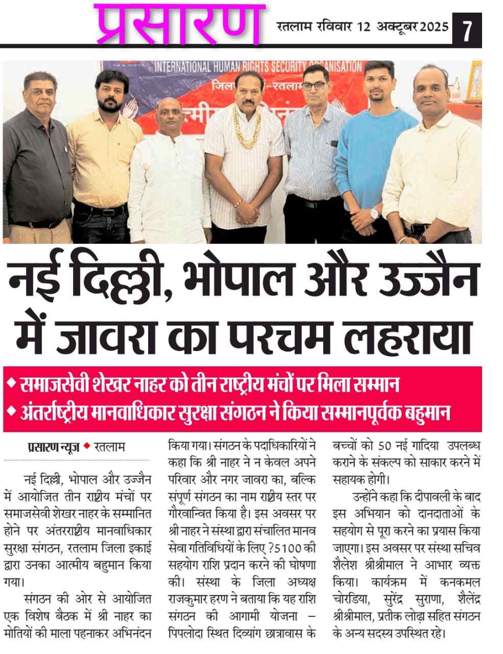 प्रतिष्ठा मे उमेश यादव राष्टीय अध्यक्ष अन्तर्राष्टीय मानवाधिकार सुरक्षा संगठन के द्वारा समाज मे व्याप्त भ्रष्टाचार के खिलाफ लडने के लिये प्रेरित करने का कार्य किया