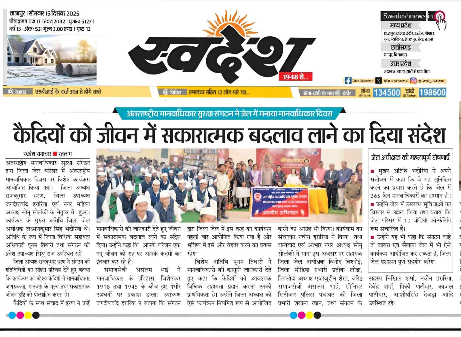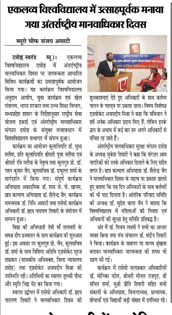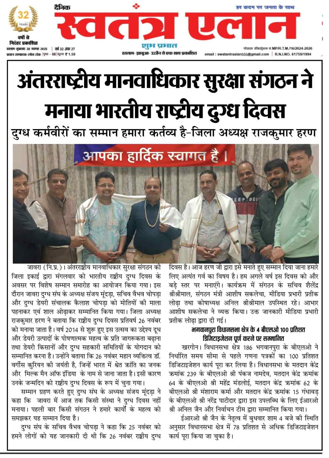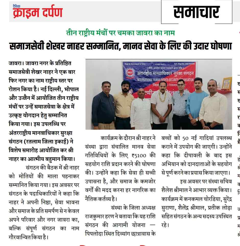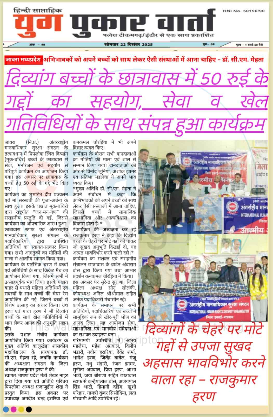प्रतिष्ठा मे उमेश यादव राष्टीय अध्यक्ष अन्तर्राष्टीय मानवाधिकार सुरक्षा संगठन के द्वारा समाज मे व्याप्त भ्रष्टाचार के खिलाफ लडने के लिये प्रेरित करने का कार्य किया